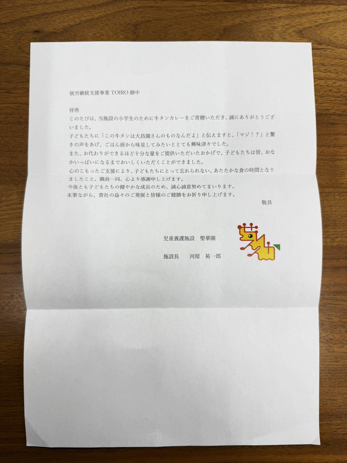 児童養護施設・聖華園の子どもたちにスポンサー様から15食分「8スマカレー」をお届けしたところ、心のこもったお手紙をいただきました。