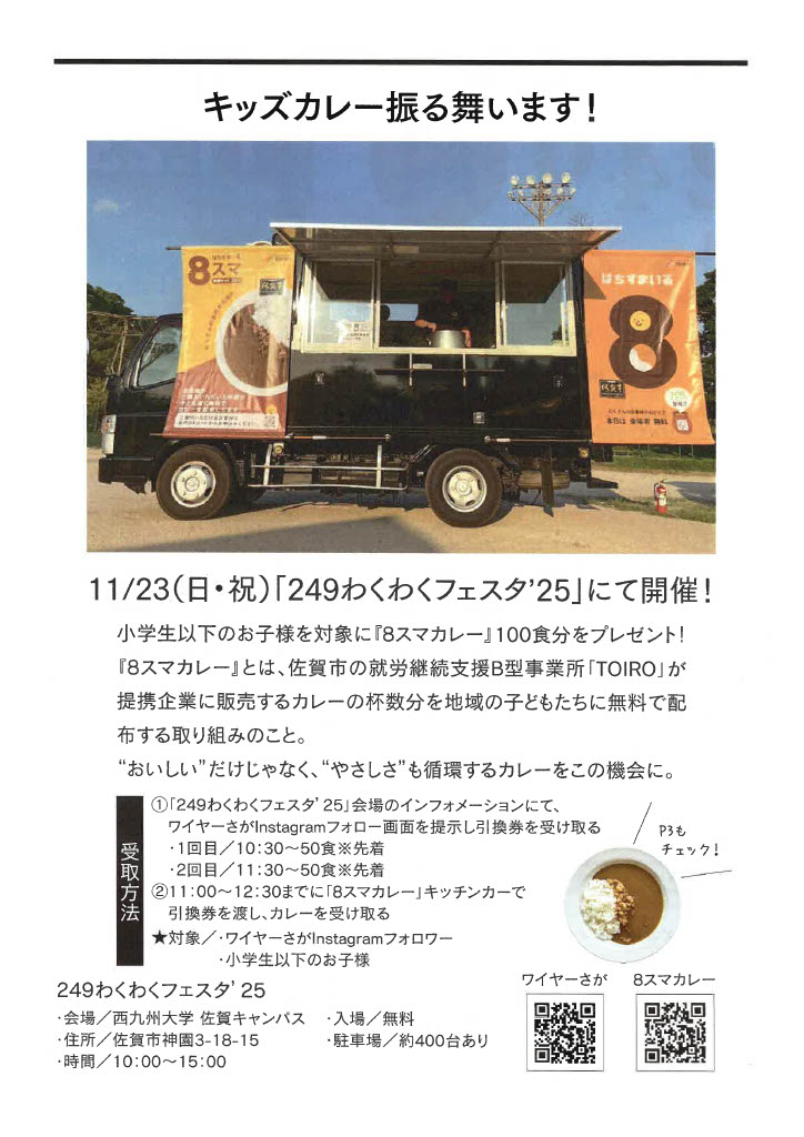 ※より多くのお子さまに味わっていただきたいので、実際にカレーを食べられる年齢のお子さまで、列に並ばれているお子さまに引換券をお渡しします。